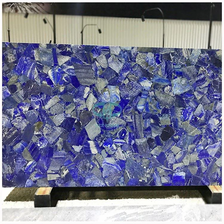 Blue Lapis Lazuli Döşeme birinci sınıf, ışık altında çok parlıyor, lüks iç yenileme için değerli taş koleksiyonu. Tezgah, masa üstü, döşeme, backsplash ve diğer birçok lüks kurulum için değerli taş lapis lazuli özel döşeme ve yüzey.